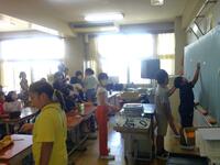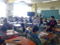 大勢の先生が3年生の教室へ入りましたが、児童の皆さんはリラックスしている様子でした。