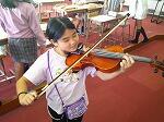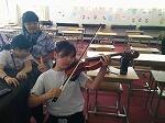 その後、ヴァイオリン体験会を開きました。ピッツィカートに挑戦する児童もいました!!