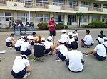 5年生の体育の様子です。島田先生に助言を頂きながら、持久走をしました。