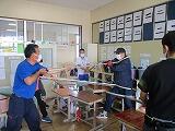 昨日、避難訓練を行いましたが、7日と8日両日で、職員による消火訓練を行います。7日(本日)半数ほどの職員が、水消火器で消火訓練を行いました。分かっているつもりでも、いざとなるとホースを出しそびれたり、火元に近づきすぎたり・・・。訓練はやはり大切ですね。日頃から備えていきます。