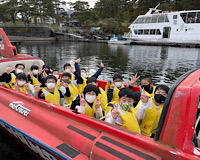 その後モーターボートに乗りましたが、ものすごいスピードで迫力満点でした。運転してくれた方が、「最高のボート日和だよ。」