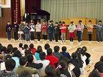 その後、「ゆき」と「たき火」を半分ずつの学年で同時に歌い、歌を楽しみました。
