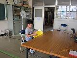 13日、職員で、来週からの児童の皆さんの登校に向け、エアコンのフィルタの掃除を行いました。また、給食調理員を中心に、校内の各水道に、飛沫に備えてのビニールシートを手作りで設置しました。学校再開に向け、準備を進めています。