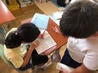 3年生が4年生のホームラーンノートを見に来てくれました。