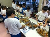 いつも食べてる給食と違って、自分で配膳するのは、新鮮ですね!