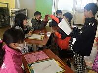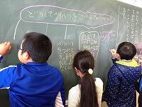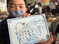最近購入したホワイトボードを使って意見をまとめていました。1・2年生もよく話をきいて協力していました。