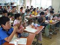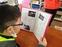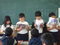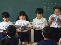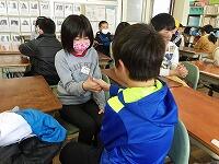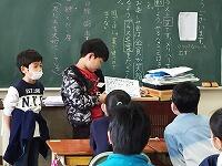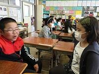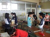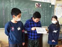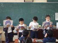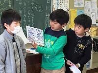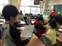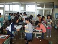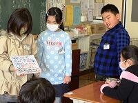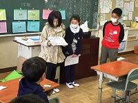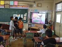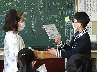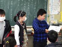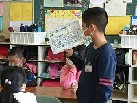 帰りの会の「今日のシャワー」に、5年生が見に来てくれました。