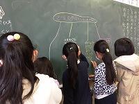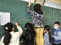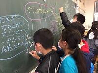 黒板に書いた友達の説明に、自分の考えを付け足して広げる人も。