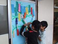 運動会も終わり、教室には障害走で使った「珍獣(子ども達が描きました。)」が飾られています。