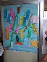 雨の日の休み時間は、七夕のたんざくに願いを書いて飾りました。みんな夢中で取り組んでいました。