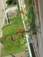 教室のベランダの花がきれいに咲いています。