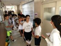 清掃の時間でも、よい行動を増やそうとお互いに「よくみて、心にとめた」ことを伝えています。