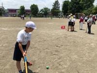 今日は、シニアクラブの方々にグランドゴルフを教わりました。