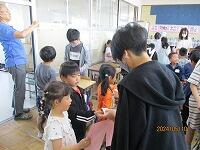 会の最後は6年生から1年生へ、折り紙の花が贈られました。とても美しい青いバラです。1年生はとても嬉しそうでした。