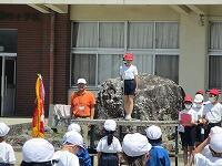 爽やかな風が吹く中、校庭で開会式の練習をしました。