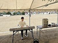 応援団の練習です。今まで音楽室や家庭科室、体育館で練習をしてきました。今日からより実践的に練習します。