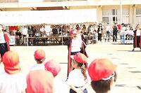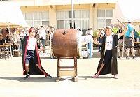 和太鼓も鳴り響きました。周りで遊んでいる児童も興味津々