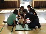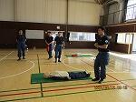 消防隊員の皆様による実演の後、職員がレクチャーを受けながら実践しました。