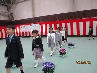 お迎えの言葉では、代表の児童があたたかい言葉を新1年生に届けてくれました。また、6年生の姿勢が素晴らしく、凜々しい姿が印象的でした。