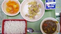 担任の荒井先生が「にんじん、たまねぎ…」とカレーライスの歌を歌いながら楽しく食育をしていました。