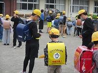 新しい教室から校庭までの避難経路確認を主な目的とし、「地震発生後、給食室から火災が発生した」という想定で、避難の訓練をしました。