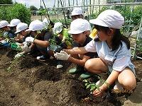2年生の生活科の学習で、学校の農園に野菜の種や苗を植えました。