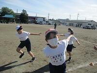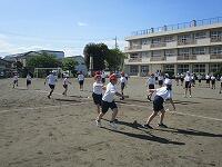 5時間目に50m走のタイム測定をしました。測定前、「ねことねずみ」でウォーミングアップをしました。