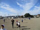 15日の持久走大会に向け、2,3時間目の間で、練習をしています。3学年ずつで、練習をしています。学校目標「粘り強い子」に関わる取組です。各自の目標に向かって頑張ってほしいと思います。