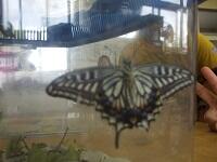 今度はアゲハチョウのよう虫が、きれいなアゲハチョウの成虫になりました。