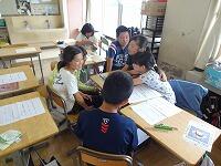 国語の時間に、「夏休みに遊ぶとしたら、海よりも山が良い。」という話題について討論会を開きました。肯定グループ、否定グループ、聞き手のグループに分かれて、話合いを進めました。