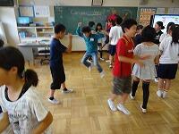 今日の外国語活動では、「Can you play ~?」 の言い方を勉強しました。授業の中では、進化ゲームをして、体を動かしながら英語での言い方に親しみました。