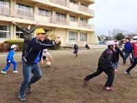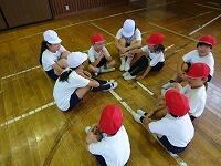 シャトルラン後に、1年生と6年生で仲間集めゲームをして楽しく遊びました。集まったら、お名前を発表し合いました。