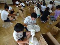 家庭科の時間に、6年生が教室用の扇風機を組み立て、各教室へ配りました。