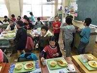 南中学生職場体験の2日目です。緊張がほぐれて、6年生と仲良く活動していました。給食も楽しそうです。