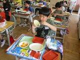 昨日の入学式を終え、今日から、1年生は、登校班で登校し、午前中授業を受け、給食を食べました。今日の給食は、カレーです。皆、美味しそうに食べていました。頑張れ、1年生。
