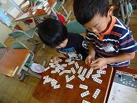 算数では、0のたし算の学習をしました。おはじきゲームをして、自然に0をたすことを学びました。