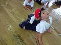 「うさぎ」「あざらし」「わに」そして、マットで「いもむし」など、楽しく体を動かしました。腕の力をつけておくと、骨折しにくくなりますので、いろいろな運動をとおして、楽しく体力を向上させていきたいと思います。