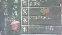 すっかり秋めいてきました。教室の後ろの黒板にも秋らしいイラストが登場しています。また、廊下にはたくさんのてるてる坊主が。これは、「いいお天気の中、自然体験学習に行けますように。」と願いを込めて作ったものです。どうか晴れますように!