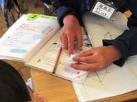 線対称な図形の特徴を探すために、学び合いが始まりました。