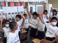 すると、その後の全校集会でなんと、6年生の書いた漢字二文字について、校長先生が紹介してくださいました。