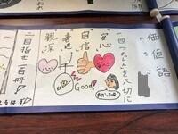体育館には、「四小に贈る漢字一文字」を飾らせていただきました。