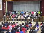 音楽集会では、4年生の学年発表。その後、音楽主任による演奏やみんなで歌う、楽しい時間となりました。