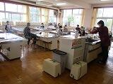 13日、職員で、来週からの児童の皆さんの登校に向け、エアコンのフィルタの掃除を行いました。また、給食調理員を中心に、校内の各水道に、飛沫に備えてのビニールシートを手作りで設置しました。学校再開に向け、準備を進めています。