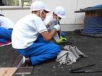 栃木南中学区合同学校運営協議会が行われた8月5日、栃木南中において、白衣の修繕をしていただきました。この日は、中学校のテーブルクロスの作製と同時に本校の白衣の修繕も行っていただきました。飛び入りの方も含め9名のボランティアさんにお世話になりました。ありがとうございました。