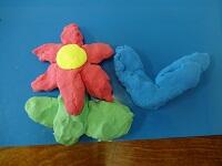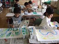 図工では、自分いろがみを使っての作品づくりが完成しました。