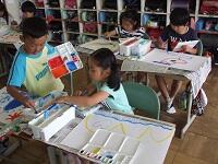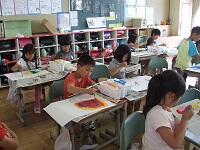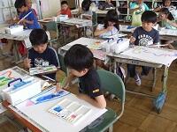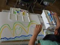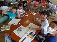 図工で「えのぐじま」をかきました。みんなにじ色を使って自分のオリジナルのえのぐじまを表現しました。まずは、使いたい色を決めるぞ!