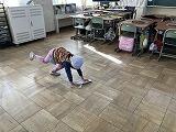 体育館清掃の様子です。横に並び、足並みをそろえてモップをかけています。隙間ができた部分は、6年生がフォローしています。