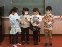 給食の前、給食の後、朝、と、まとまった時間がとれず、何人かずつになってしまっていますが、主役の人をよく見て、褒め言葉をかけています。