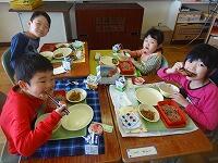 四小で作った給食は、おいしくて、もりもり食べてています。