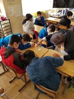 グループに分かれて、予想、実験方法を考えて、実験をしました。